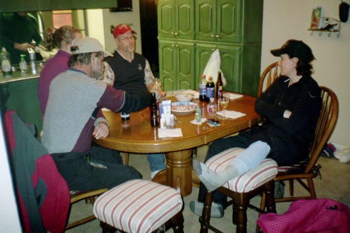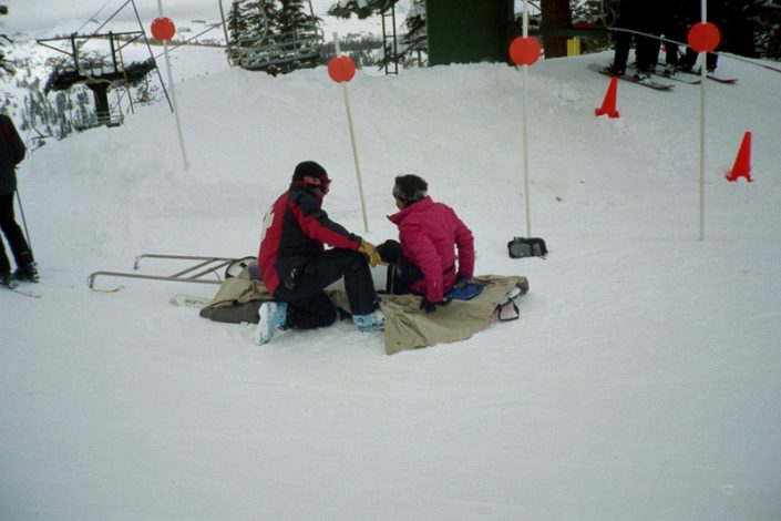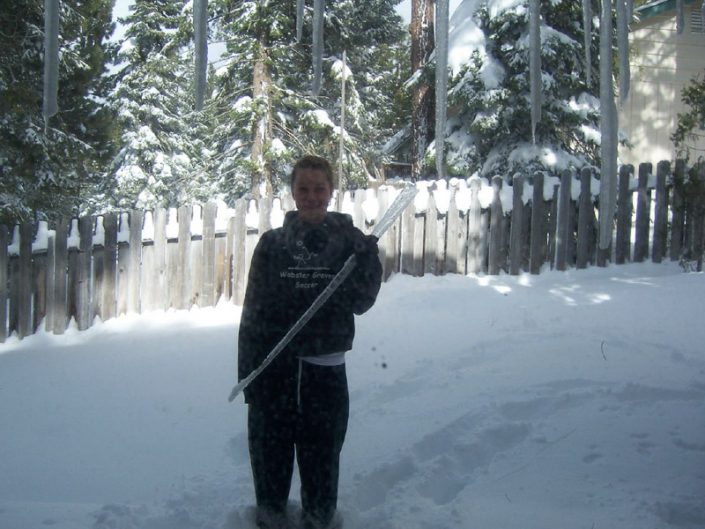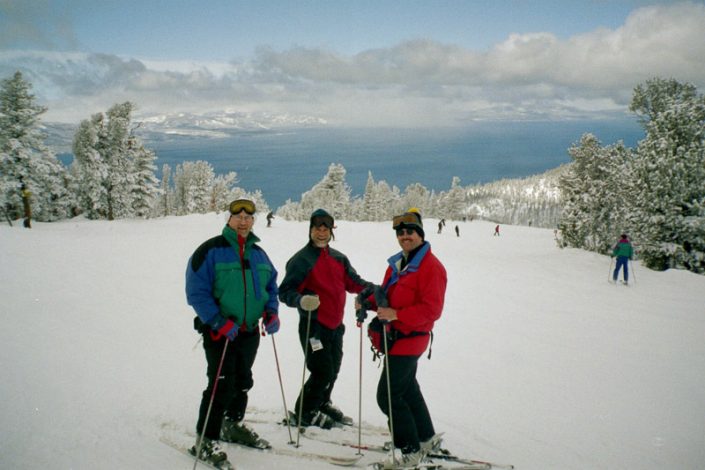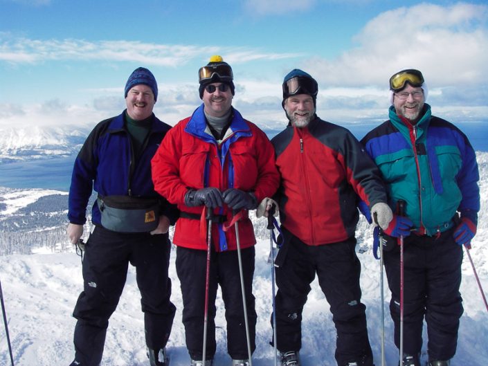 Day 1 (Friday): We skied Heavenly on Friday. It was a beautiful, clear, cold and WINDY day with fresh snow over hard ice… But it was still a nice day to be there. In all the time I spent in and around Tahoe as a kid, I never did ski Heavenly, but heard stories about the Nevada side, so we worked our way over there to see just how steep it is. It’s pretty darned steep… And to look down at the desert when you ski is kind of cool.One comment about Heavenly. Of all the places I’ve skied over the years, I’ve never spent more time walking on cat-trails than at Heavenly. There are a LOT of flat spots…. Day 2 (Saturday): After the announcement on Bay Area TV that this would be an epic weekend. We anticipated that Heavenly would be a zoo, so we drove down to Kirkwood. As we got to Caples Lake (about 2 miles from Kirkwood), traffic came to a complete standstill. It took us nearly an hour to get that last two miles. Amazing… By the time we got on the hill, it was darned near 11am. But, with as big as Kirkwood is, the crowds spread out so much that we never waited more than a couple minutes in any line. We spent a lot of time playing on Chair 6 and the face.I didn’t jump off the cornice like when I was younger, but we did spend a lot of time up on the top. The wind picked up in the afternoon to bring in the next storm, which was supposed to be a “significant”. Mona decided to try jumping off the cornice at the top of the double-black diamond run, and hurt her knee. She fell so hard that she slid right down the face of the mountain and ended up right at the top of another chairlift. Some people might say she caught an edge trying to get off the chair lift, but since no photos of the actual event exist, we can only surmise it’s from an underhanded effort to besmirch her name. Day 3 (Sunday): Well, the “significant storm” was an understatement, to say the least. It started snowing on Saturday afternoon, got bad Saturday night, and by Sunday, was pretty nuts. We tossed Rachel the keys to one car, and I drove another, to take Mona down to the hospital for an MRI. By now, the plows had created 3 foot snow burms in the middle of the street, just to get it off the highway. Rachel, being young and impetuous, decided to drive right through them in her 4×4 on the way to the hospital. Basically, this was a day at home, watching TV, playing pool, and playing Farkle. Although we “should” have been skiing, I definitely did not have a problem resting for a day. I have one comment for Rachel: It is NOT polite to ask your elders “When WAS the last time you made any points” when playing Farkle. Just sit there and smile. I know what you’re thinking… I don’t need you to actually say it out loud… 🙂 Day 4 (Monday): Well, the snow keeps flying. It was another serious snow day, and mixed with wind made skiing kind of interesting. Day 5 (Tuesday): Fly home |