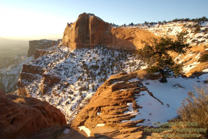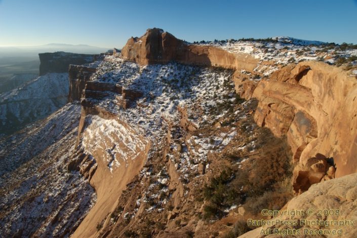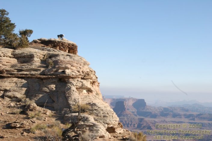 From the Green River Overlook, we drove over to Dead Horse Point State Park, scouting for sunset shooting locations. It was an interesting location, but for a state park, it was pretty small. From the overlook, you’re looking straight down over 2000 feet at the Colorado River.